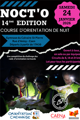 L'Orientation Caennaise a le plaisir de vous convier à la 14ème édition de la Noct'O qui se déroulera le samedi 24 janvier 2026.